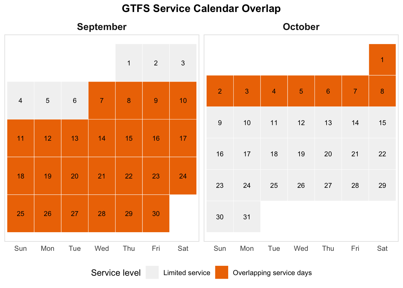 gtfs_overlap <- check_gtfs_overlap(gtfs_folder = r5_graph_path) And view the overlap_plot:
